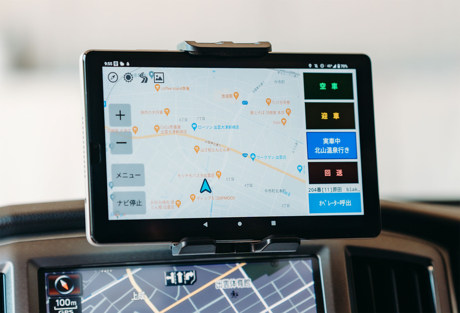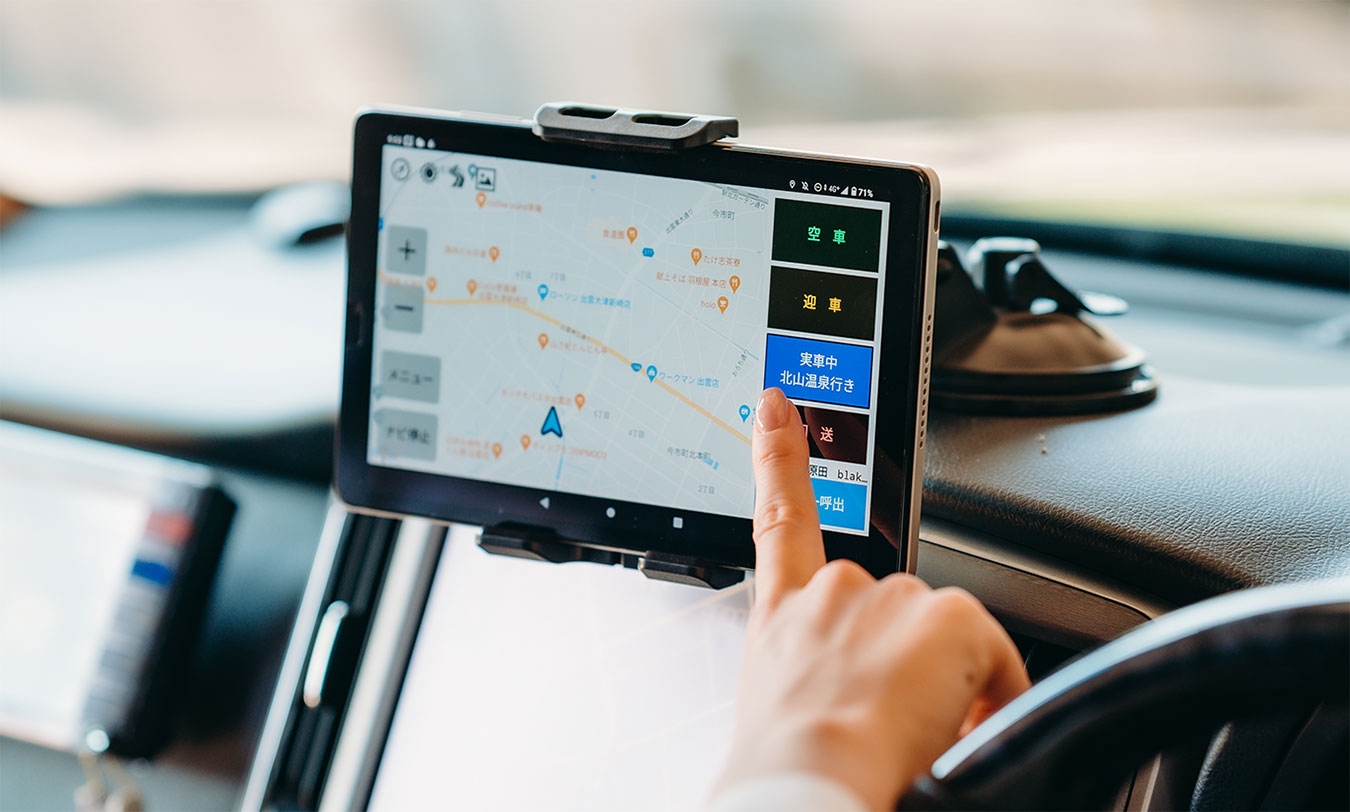 お客様の配車依頼に合わせ、目的地・ルートなどを瞬時に設定。無駄のない運行が可能となりました。