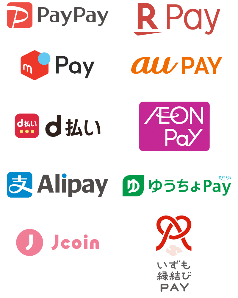 各種キャッシュレス決済がご利用いただけます